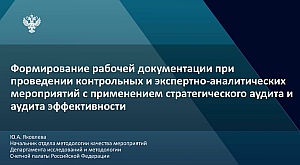 Семинар на тему «Формирование рабочей документации при проведении контрольных и экспертно-аналитических мероприятий с применением стратегического аудита и аудита эффективности», состоявшийся при технической поддержке Портала Счетной палаты Российской Федерации и контрольно-счетных органов Российской Федерации, проведен начальником отдела методологии качества мероприятий Департамента исследований и методологии Счетной палаты Российской Федерации Юлией Яковлевой.