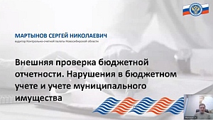 Вебинар Союза муниципальных контрольно-счетных органов «Внешняя проверка бюджетной отчетности. Нарушения в бюджетном учете и учете муниципального имущества» состоялся 30 января 2025 года в режиме видеоконференцсвязи. Его спикером выступил кандидат экономических наук, аудитор Контрольно-счетной палаты Новосибирской области Сергей Мартынов.