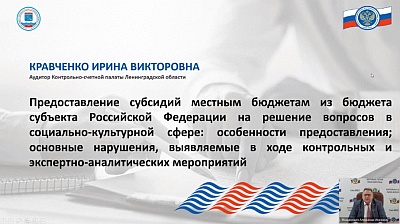 Вебинар Союза муниципальных контрольно-счетных органов «Предоставление субсидий местным бюджетам из бюджета субъекта Российской Федерации на решение вопросов в социально-культурной сфере: особенности предоставления и основные нарушения, выявляемые в ходе контрольных и экспертно-аналитических мероприятий» состоялся 19 февраля 2026 года. Его спикером выступила аудитор Контрольно-счетной палаты Ленинградской области Ирина Кравченко.